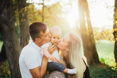 Üç yeşil bahçe içinde güzel aile