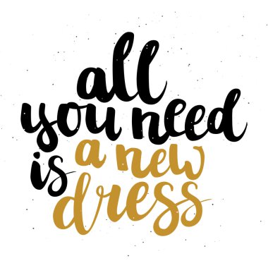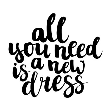"İhtiyacın olan tek şey yeni bir elbise" ISO yazı elle çizilmiş fırça mürekkep