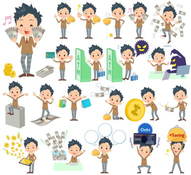 Çizgili takım elbise perma saç erkekler para