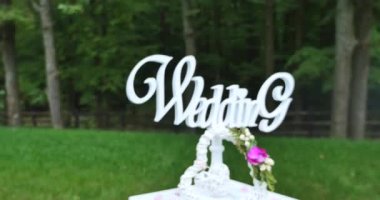 Düğün süslemeleri çiçek orman arka plan üzerinde.