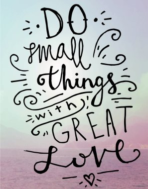 "Büyük sevgi ile küçük şeyler yapın" motivasyon suluboya posteri