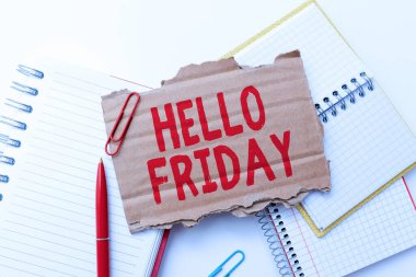 Kadın el yazma Merhaba saydam b üzerinde bir marker ile Cuma