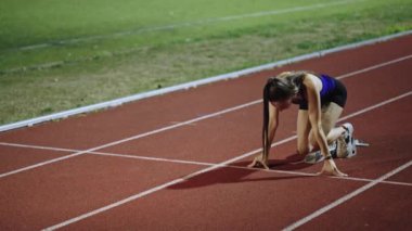 Umutsuz hayal kırıklığına parça runner sporcu kadın bir Stadyumu'nda dolly