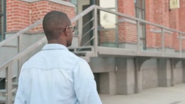 Mutlu genç adam yürüyor, açık siyah