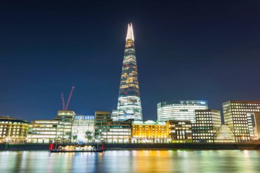 Londra, İngiltere - 17 Haziran 2016: Gece Panorama Southwark Köprüsü, Shard gökdelen ve Thames Nehri, Londra