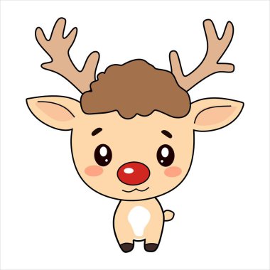 mutlu neşeli Noel Ren geyiği kawaii karakter