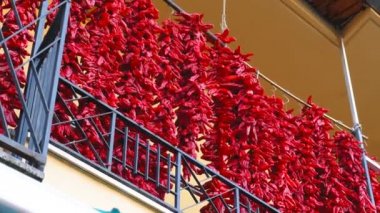 Sorrento, İtalya, dar sokak önünde turist çekmek için biber kurutulmuş