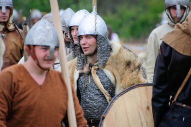Drohiczyn, Polonya, 8 Temmuz: Ortaçağ savaşçı Vikingler, Baltık ve Slav savaşçılar toplantı 8 Temmuz 2017 Drohiczyn, Polonya'da üzerinde kavga sırasında.
