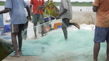Yerli balıkçılar balıkçılık deniz üzerinde yakalayan balık seçilmesi kadın