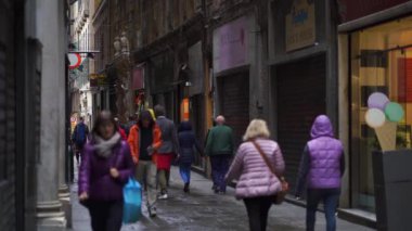 İki kız bir dükkan pencere üzerinde alışveriş caddesine bak.