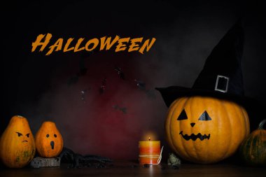 Cadılar Bayramı, dumanlı karanlık gecede ürkütücü kabak