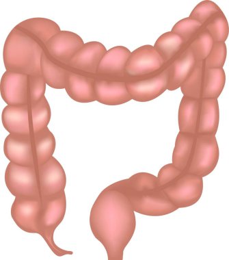 Kalın bağırsak anatomi beyaz bir arka plan üzerinde çizim renkli