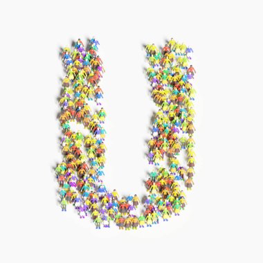 Bir grup insan İngilizce Alfabe harf U.