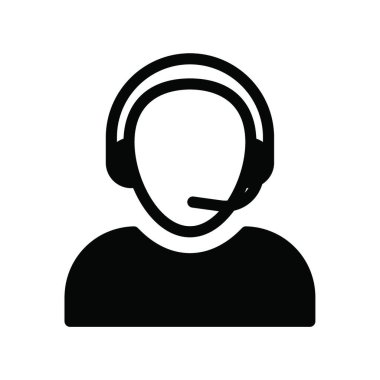 Düz sarı simge siyah bir izole çağrı merkezi için bir kişinin