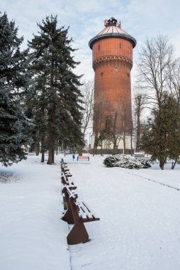 Saint Petersburg, Rusya'nın turistik landmark: rostral sütun ve bir park ile görünür Palace Bridge ile bir kış günü kar çok ile tarafından Vasilievsky adasında ağaçlarının silhouettes.