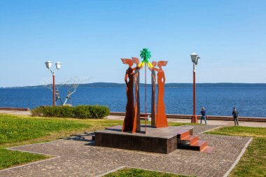 A-labirent-ing kahkaha bronz heykel Morton Park Vancouver, Kanada.