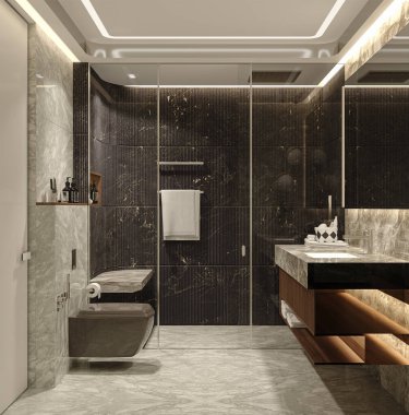 3D render klasik banyo lüks döşeme dekor penceresinden güzel manzaralı