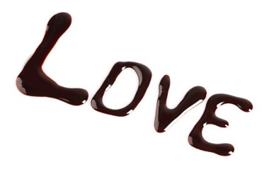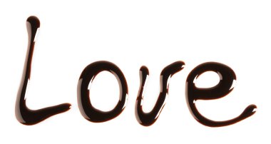Sütlü çikolata aşk kelime izole beyaz arka plan üzerinde. Sevgililer günü