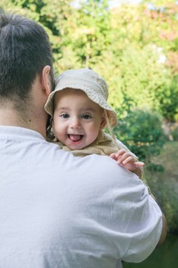 Tanınmayan baba küçük kızı kampa gidiyoruz içinde ön plana