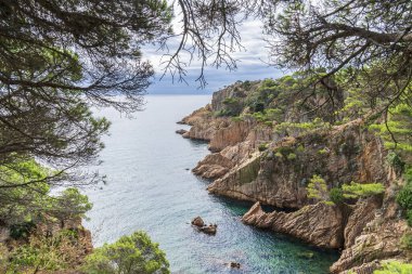 Sahil Pisak köyün güzel derin mavi deniz. Hırvatistan. Bihać Adası arka planda.