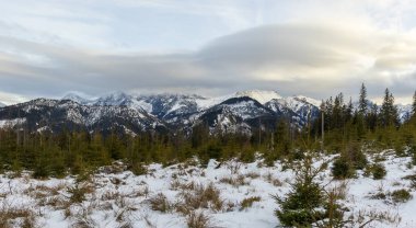 Beautiful winter landscape with Carpati Piatra Craiului mountain