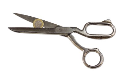 Beyaz arkaplanda izole edilmiş eski makas