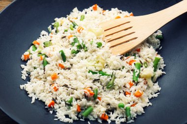 Düz dal ile Basmati pirinç pilavı veya pulav bezelye veya yeşil bezelye eklendi Sarı renkle matar pulav olarak da bilinir kullanarak sebze pilav ile servis