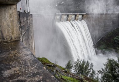 Bir yağmurlu günde Cleveland Barajı dolusavak. North Vancouver, Bc, Kanada.