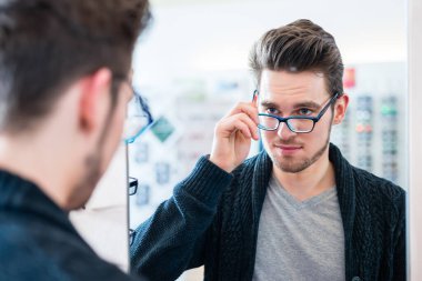 Kendisi de Güzellik Salonu Aynaya bakar genç sakallı adam portresi.