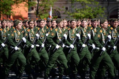 2 muhafız motorlu tüfek Taman Division askerleri kırmızı kare üzerinde geçit onuruna Zafer Bayramı sırasında.