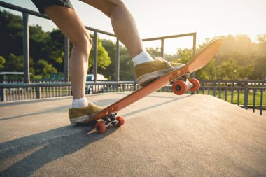 Kaykaycı skatepark rampa üzerinde kaykay görüntü kırpılmış