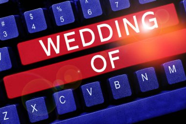 Düğün, gösterilen metin işareti. Erkek ve kadın şimdi evli çift sonsuza kadar mor anahtar niyeti klavye gibi yansıma belge bilgisayar oluşturmak ilan kavramsal fotoğraf