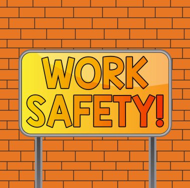 Kavramsal el iş güvenliği gösterilen yazma. İş fotoğraf vitrine ilkeleri ve yerde hükümet göre kontrol standart adam elinde megafon konuşma balonu mesaj mavi arka plan