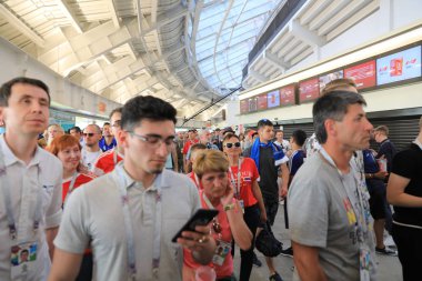 Kaliningrad, Rusya - 16 Haziran 2018: Grup oyunları 2018 FIFA Dünya Kupası Rusya'nın tutmak için genç gönüllü modern Kaliningrad football stadium (Ayrıca denilen Arena Baltika) yakınındaki.