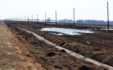 Kirli köy yolunda merkezi Ukrayna tarım alanları arasındaki ile kasvetli kış günü manzara