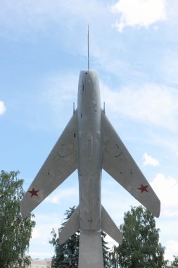 Evpatoria, Crimea - 1 Mart 2018: Pilotlar Karadeniz filosu Hava Kuvvetleri, Crimea Evpatoria şehir kış bir kar yağışı anıt