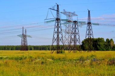 Sonbahar sahneleri. Energo. Yeşil enerji, enerji santrali, yakın yüksek voltajlı güç hatları kavramı. Güç Dağıtım İstasyonu. yüksek voltajlı elektrik iletim bir pilon siluet kulenin.