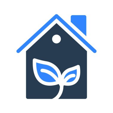 Beyaz arka plan üzerinde izole mavi ve gri renklerde yaprakları ile Eko ev