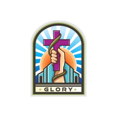 Atletik Hıristiyan logo. Altın kalkan, İsa'nın haç ve bir voleybol. Amblem için rekabet, Bakanlığı, konferans, kamp, seminer, vb..