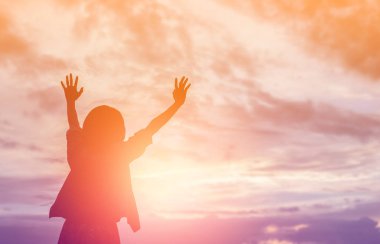 Güzel bir arka plan için dua eden bir kadın silueti.