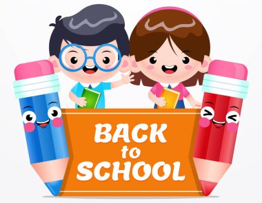 kız ve erkek öğrenciler sırt çantası boya kalemi ve kitap vektör çizim ile