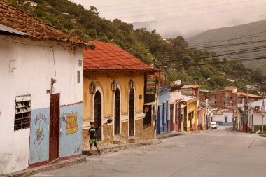 Copan Ruinas, Honduras - 11 Nisan 2016: Arnavut kaldırımlı sokakları Copan Ruinas Köyü.