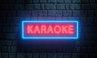 Karaoke bar işareti neon. Ampulleri inşa büyük Işıklı harfler 3d çizim yol açtı..