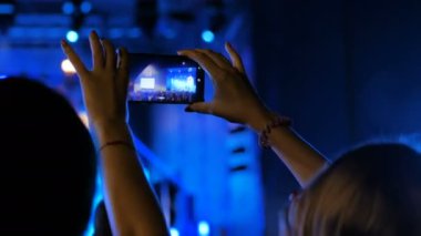 Akıllı telefonlu canlı müzik konserinin görüntülerini kaydeden eller.