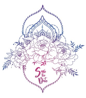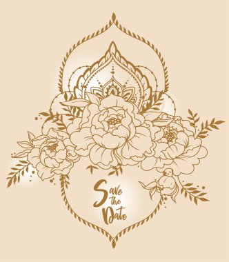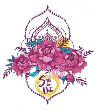 romantik yıldönümü afiş yutmak, şakayık çiçekleri ve dekoratif çerçeveler, vektör çizim ile için