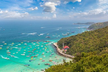 Bir yaz günü Tayland Koh Lan adasının panoramik havadan görünümü