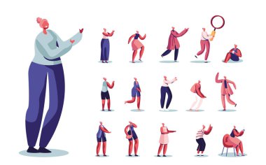 Yaşlı kadın hastalıkları, ağrı sorun arkada, boyun, kol, kalp, diz ve baş. Üst düzey sağlık renkli çizgi film karakterleri detaylı vektör çizimler ayarla