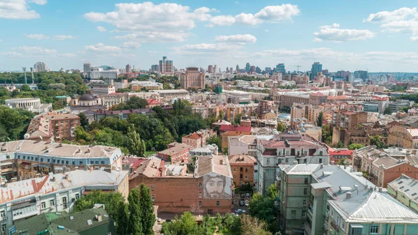 "İlahi yüzlerce" kare. 8 Ağustos 2018. Kiev (Kiev). Ukrayna. Havadan görünümü grafiti. Park. Binaların çatıları. Mikhailovskaya Meydanı.
