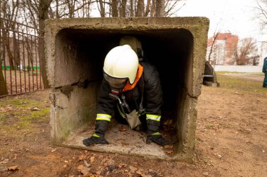 Minsk, Beyaz Rusya - 20 Eylül, 2018: itfaiyeci genç kadın, inci