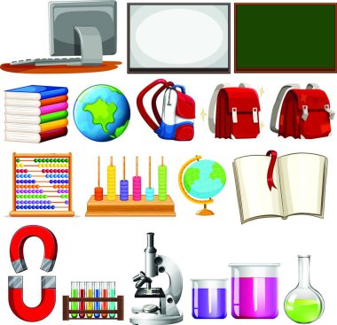 Okul eleman illüstrasyon öğrenme seti